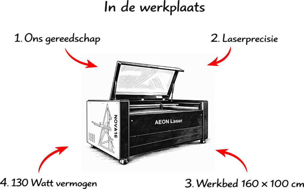Wij graveren bijna elk design op plexiglas en snijden dit met onze lasermachine mooi en precies op maat van het design.